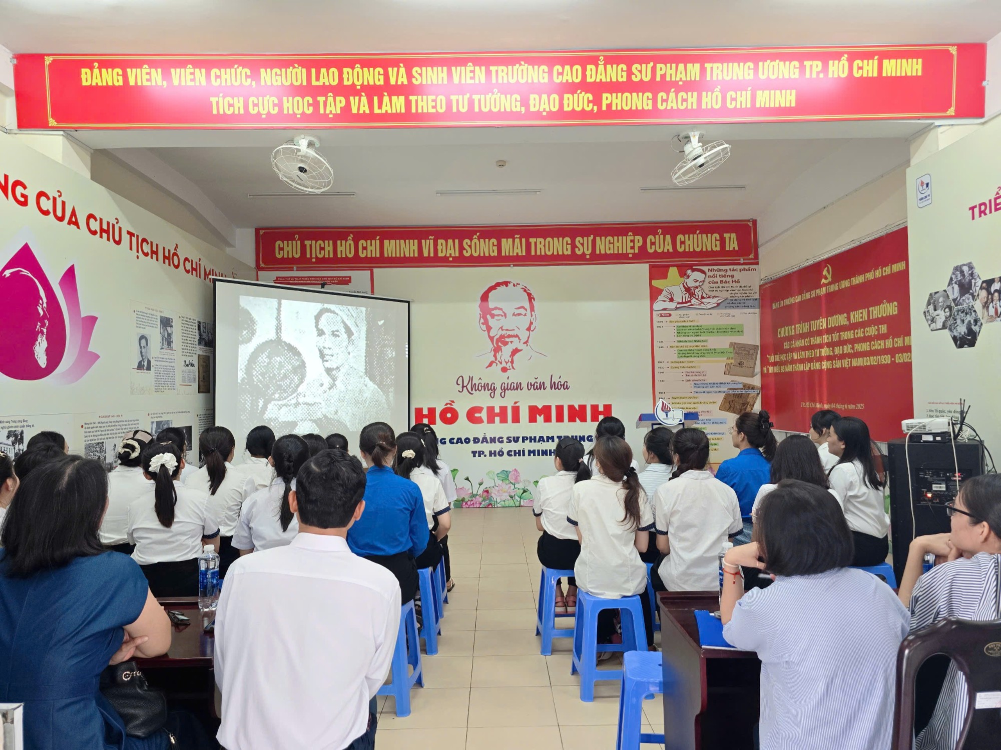Thiết thực chào mừng Đại hội Đảng bộ Trường Cao đẳng Sư phạm Trung ương TP. Hồ Chí Minh lần thứ VI, Nhiệm kỳ 2025-2030, kỷ niệm 135 năm ngày sinh chủ tịch Hồ Chí Minh (19/5/1890 – 19/5/2025) và 114 năm ngày Bác Hồ ra đi tìm đường cứu nước (05/6/1911 – 05/6/2025). Chi bộ 5 tổ chức sinh hoạt chuyên đề quý 2 năm 2025 với chủ đề “Học tập và làm theo tư tưởng, đạo đức, phong cách Hồ Chí Minh”. Tham dự chương trình có đồng chí Lê Thanh Phong – Phó Bí thư Đảng ủy, Chủ tịch Hội đồng Trường, đại diện Chi ủy các chi bộ trực thuộc trường, Ban chấp hành Đoàn Trường, Ban chấp hành Hội Sinh viên trường, các đồng chí đảng viên chi bộ 5 và quần chúng ưu tú thuộc chi bộ.