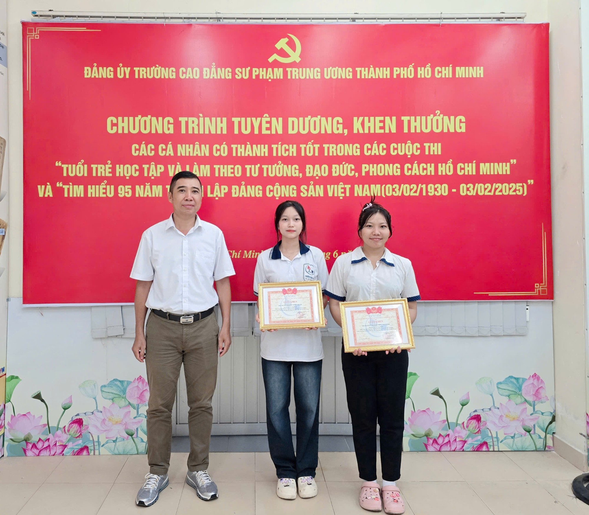 Tại buổi sinh hoạt, Đảng ủy – Ban Giám hiệu Trường đã tuyên dương các sinh viên đạt thành tích tiêu biểu tại hội thi Tuổi trẻ học tập và làm theo tư tưởng, đạo đức, phong cách Hồ Chí Minh do Bộ Giáo dục và Đào tạo phối hợp với Trung ương Đoàn TNCS Hồ Chí Minh tổ chức và trao giải sinh viên đạt giải trong cuộc thi tìm hiểu 95 năm thành lập Đảng Cộng sản Việt Nam (03/02/1930 – 03/02/2025) do Đảng ủy Trường tổ chức.