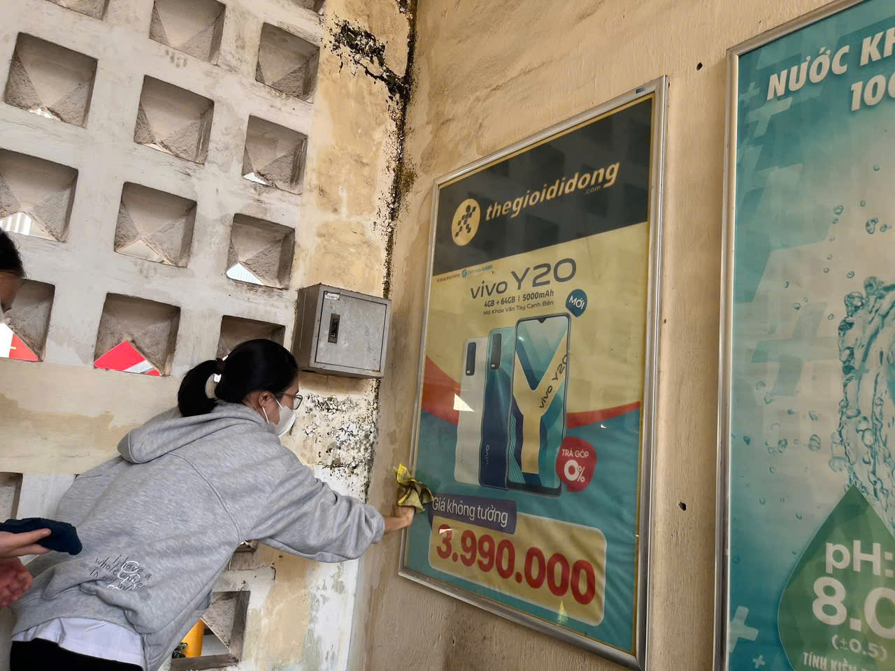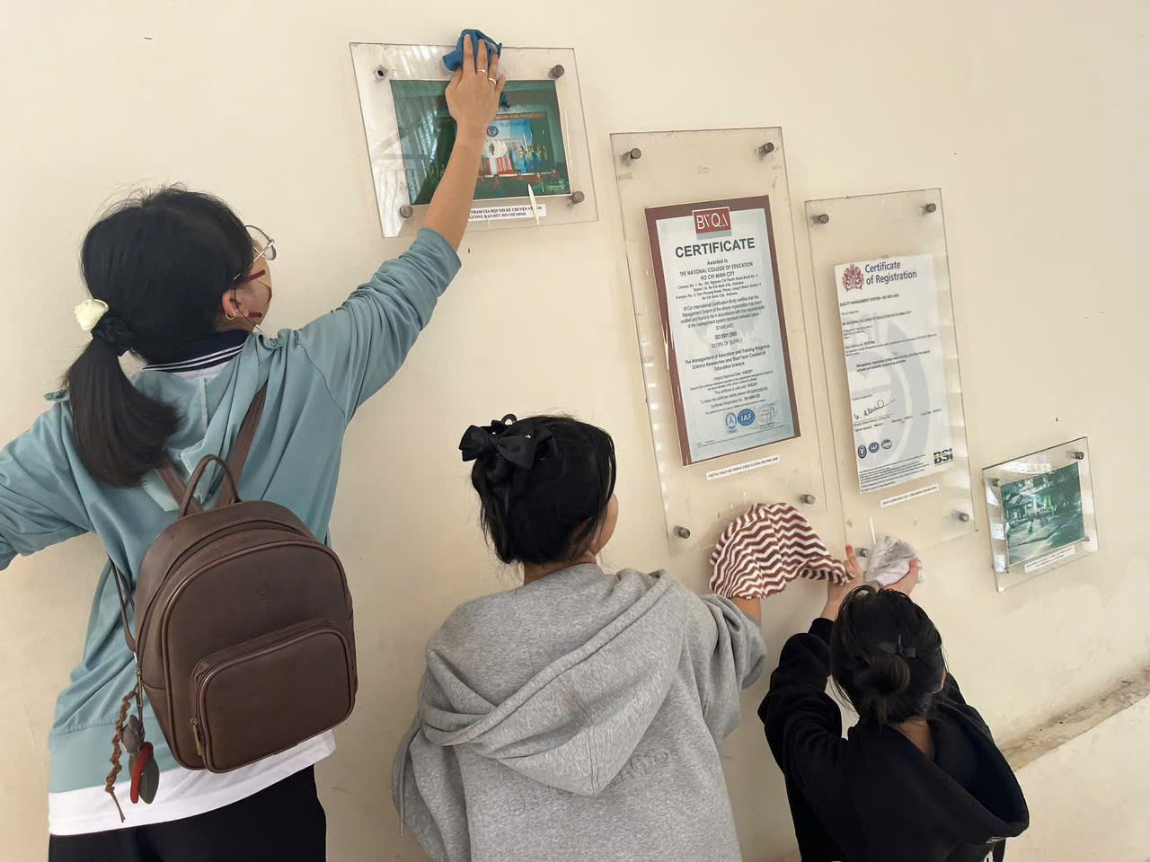 Từ việc lau chùi pano, bảng nội quy, làm sạch cửa kính, đến quét dọn và sắp xếp lại khu vực sinh hoạt chung, tất cả đều được thực hiện tỉ mỉ, tận tâm, thể hiện tinh thần tự giác, đoàn kết và trách nhiệm của tuổi trẻ Trường Cao đẳng Sư phạm Trung ương TP. Hồ Chí Minh.