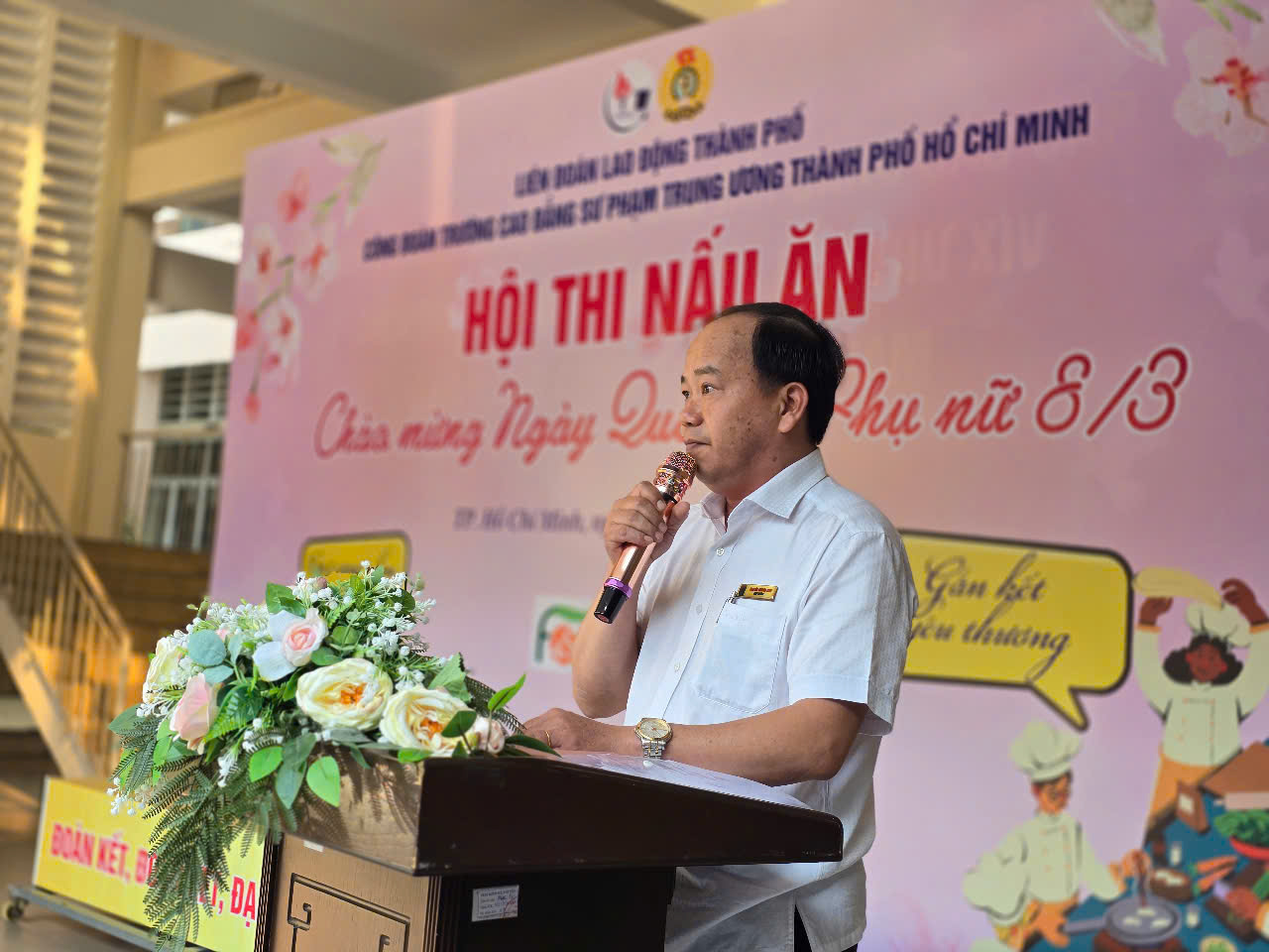 Chương trình vinh dự có sự hiện diện của các đại biểu khách mời, bao gồm Đồng chí Huỳnh Thiện Nhi – UVBTV Quận ủy, Trưởng Ban Tổ chức Quận ủy Quận 10, TP.HCM; Đồng chí Huỳnh Công Ba – Phó Trưởng Ban Cán sự Giáo dục và Đào tạo, LĐLĐ TP. HCM; Đồng chí Nguyễn Hữu Nhân – đại diện Ban Nữ công LĐLĐ TP.HCM; Đồng chí Hồ Như Duyến – UVBCH, Trưởng Văn phòng đại diện Công đoàn Giáo dục Việt Nam, Phó Trưởng Đại diện Văn phòng Bộ Giáo dục và Đào tạo. Về phía nhà tài trợ, chương trình hân hạnh đón tiếp Bà Huỳnh Hồng Lam – Giám đốc Công ty 4 Season Food Việt Nam, Bà Trịnh Thị Kim Ngọc – Giám đốc Trung tâm Bồi dưỡng Khoa học giáo dục, Bà Nguyễn Thị Thu Lương – Hiệu trưởng Trường Mầm non Thực hành. Về phía nhà trường, có sự hiện diện của đồng chí Nguyễn Nguyên Bình – Bí thư Đảng ủy, Hiệu trưởng; Đồng chí Lê Thanh Phong – Phó Bí thư Đảng ủy, Chủ tịch Hội đồng Trường cùng các đồng chí là Trưởng, Phó các đơn vị trong trường. Đại diện Công đoàn Trường có đồng chí Phạm Thị Lệ Xuân – Chủ tịch Công đoàn cùng Ban Chấp hành Công đoàn, tổ trưởng các tổ công đoàn và đông đảo viên chức, người lao động.