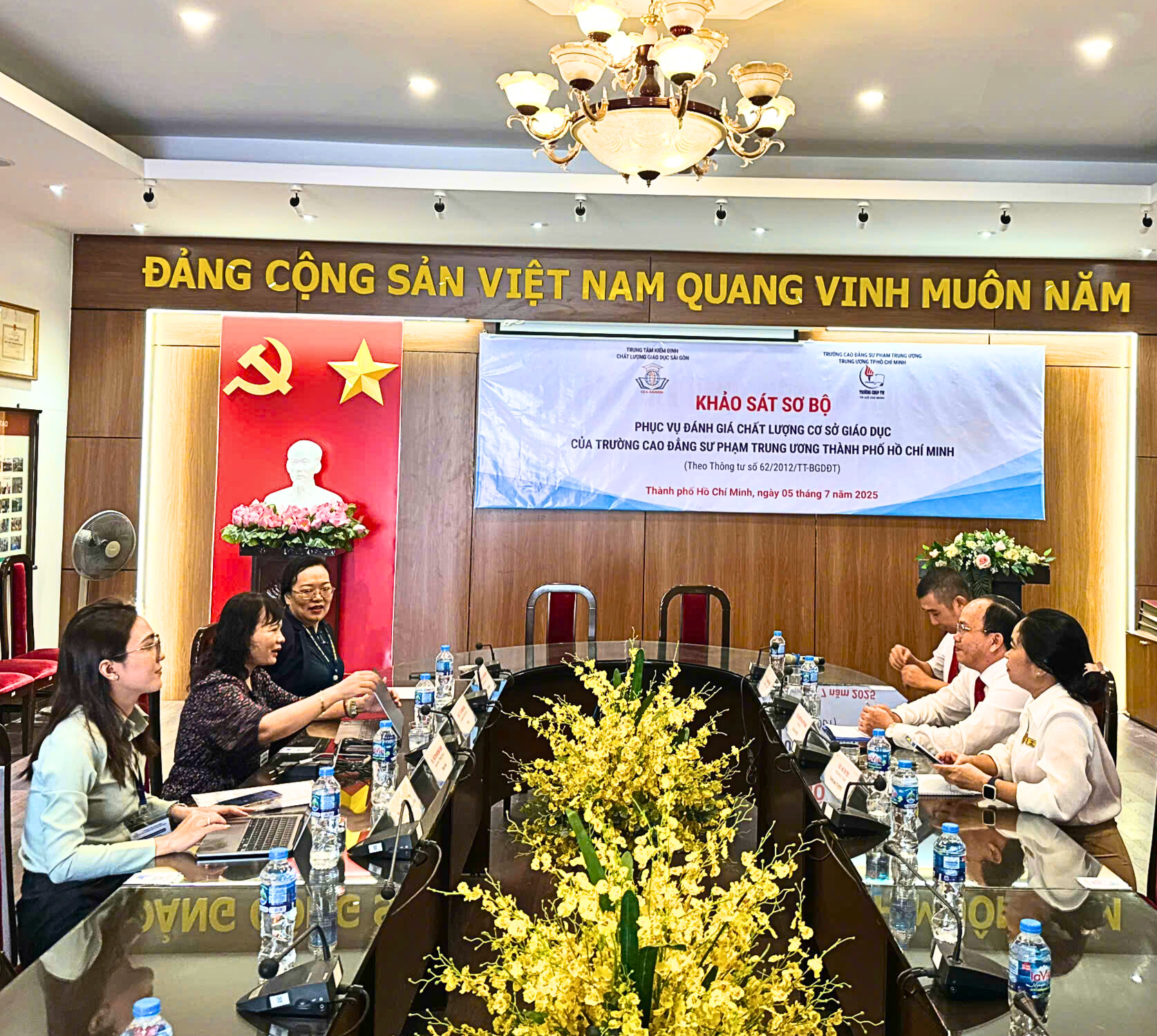 Ngày 05/7/2025, Trường Cao đẳng Sư phạm Trung ương TP. Hồ Chí Minh đã tổ chức đón tiếp và làm việc với Đoàn chuyên gia đánh giá ngoài thuộc Trung tâm Kiểm định chất lượng giáo dục Sài Gòn đến Khảo sát sơ bộ, chuẩn bị cho đợt Khảo sát chính thức đánh giá ngoài cơ sở giáo dục theo tiêu chuẩn kiểm định chất lượng của Bộ Giáo dục và Đào tạo.