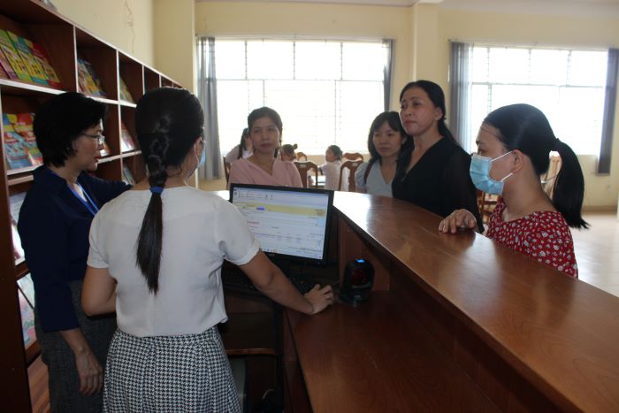 Đoàn ĐGN tiến hành kiểm tra tình hình phục vụ người học của Thư viện tại cơ sở 2
