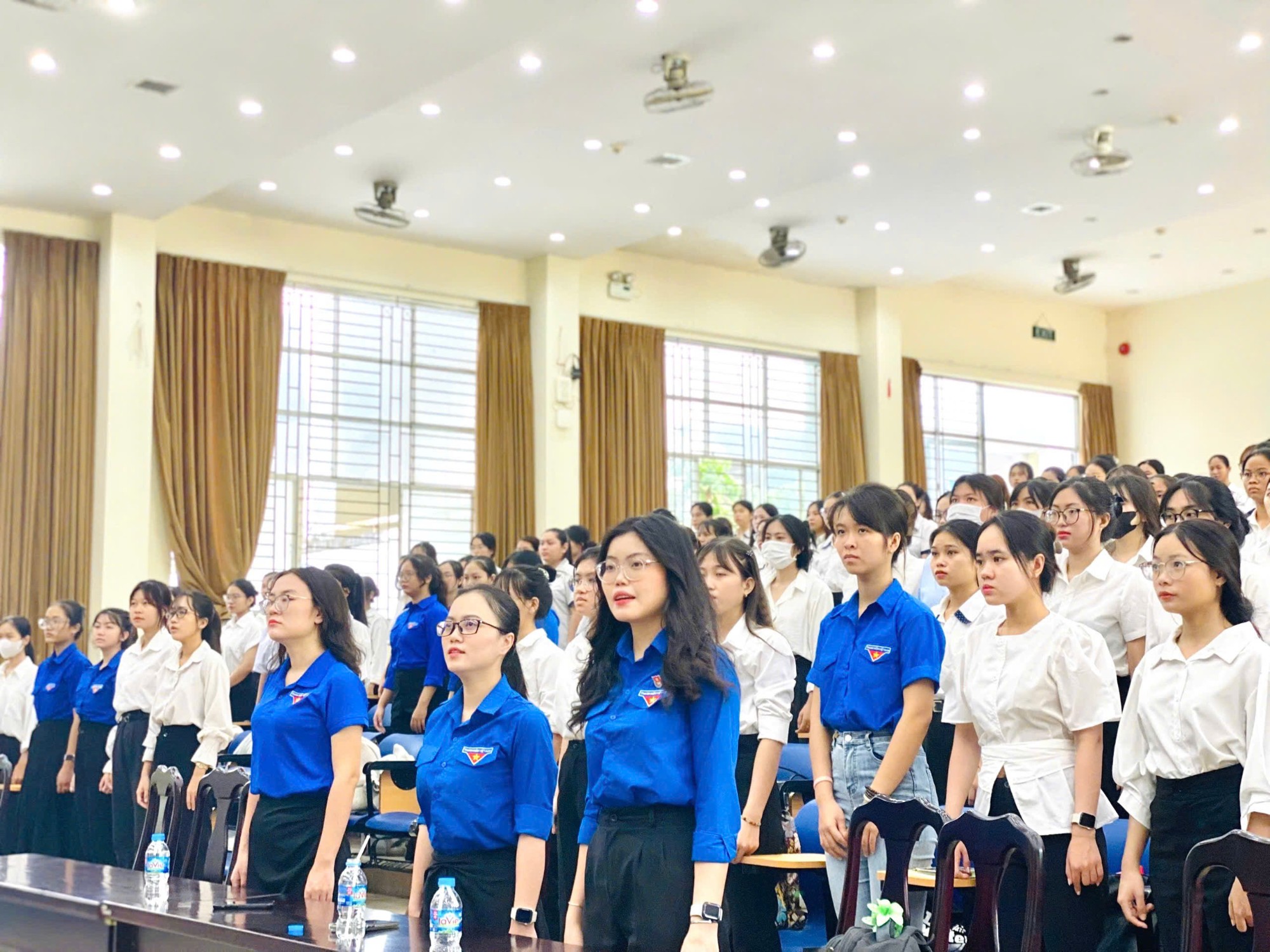 Tại buổi lễ, đoàn viên Trần Thị Thanh Trúc – Chi đoàn K35M04 đã đại diện các bạn đoàn viên mới phát biểu lời hứa Đoàn viên mới