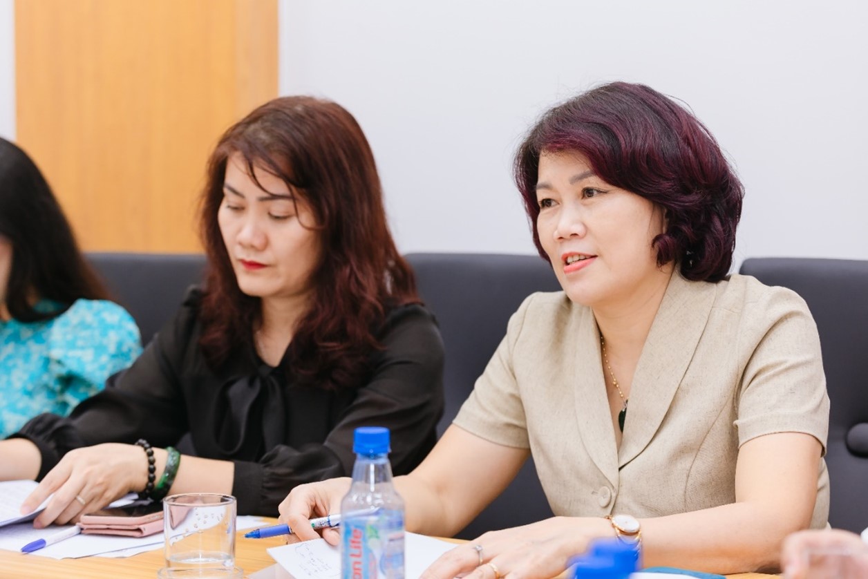 Bà Hoàng Thị Dinh, Phó Vụ trưởng Vụ Giáo dục Mầm non, Bộ GD&ĐT, thành viên Hội đồng trường phát biểu ý kiến