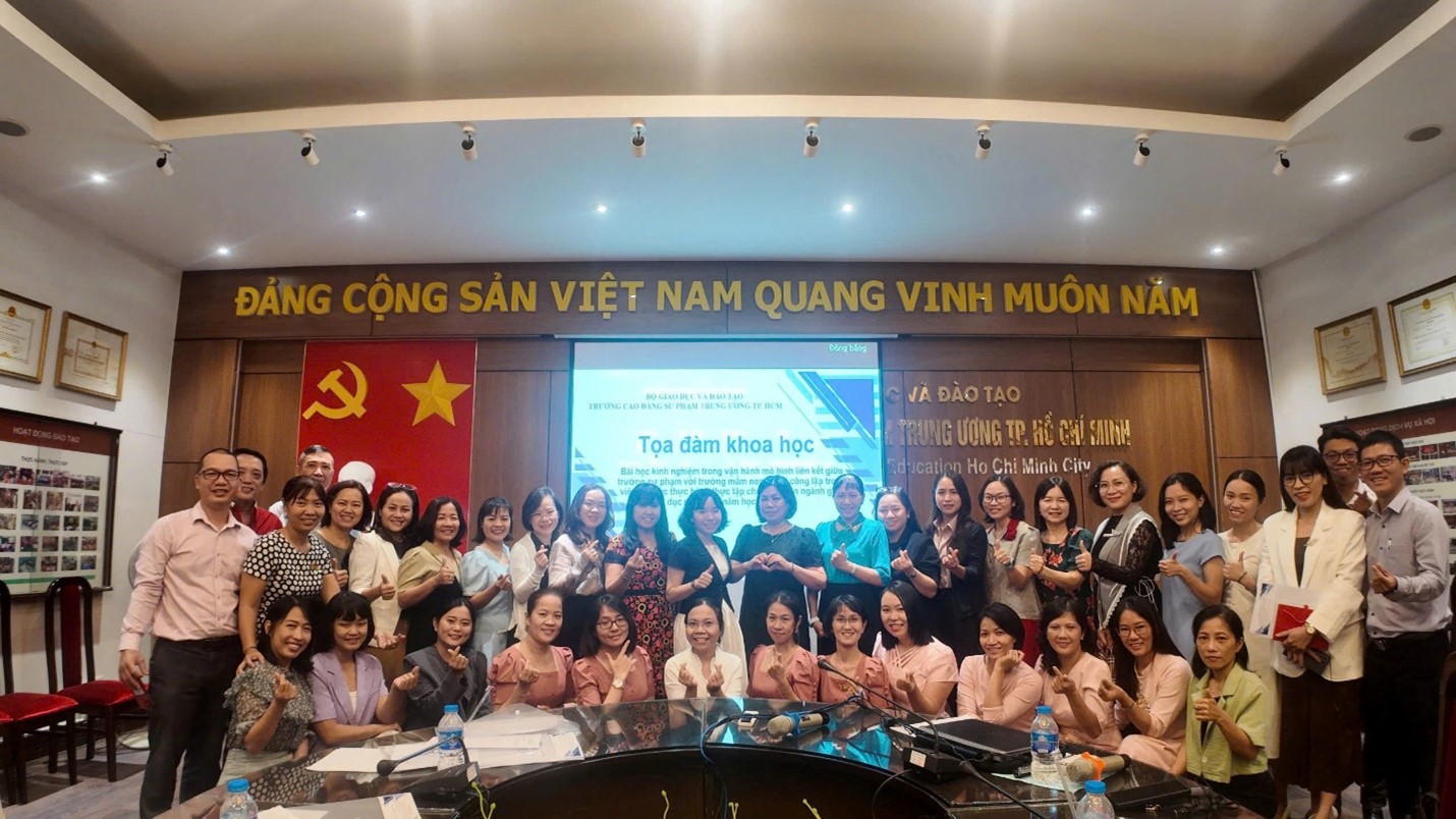 Trong khuôn khổ thực hiện nhiệm vụ nghiên cứu thuộc Đề án 33 năm 2024“Vận hành mô hình liên kết giữa trường sư phạm với trường mầm non ngoài công lập trong việc tổ chức thực hành thực tập cho sinh viên ngành Giáo dục mầm non năm học 2024-2025 (bảo đảm chuẩn đầu ra sản phẩm của nhiệm vụ số 18 được giao tại Quyết định số 1350/QĐ-BGDĐT ngày 15/5/2019)”- Mã số ĐA33-2024-CM3-03, nhóm thực hiện nhiệm vụ đã tổ chức Tọa đàm khoa học “Bài học kinh nghiệm trong vận hành mô hình liên kết giữa trường sư phạm với trường mầm non ngoài công lập trong việc tổ chức thực hành thực tập cho sinh viên ngành giáo dục mầm non năm học 2024-2025” vào ngày 30/10/2024 tại phòng truyền thống E3, Trường Cao đẳng Sư phạm Trung ương TP.HCM nghiêm túc và hiệu quả.